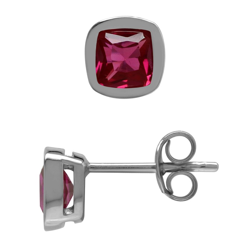 Silvershake Created 1.3 ctw 5 mm Cushion Shape Ruby 925 Sterling Silver Stud ...