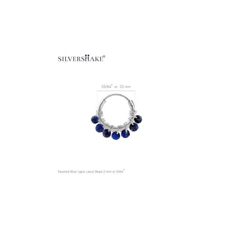 Silvershake Extra Petite 10MMx2MM Natural Blue Lapis Lazuli Bead Stone 925 Sterling Silver Minimalist 0.4 Inch O-Hoop Earrings Jewelry for Women or Teens, Sterling Silver, natural blue lapis lazuli