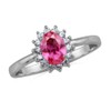 Silvershake Petite 7X5mm Oval Shape Gemstone White Gold Plated or 18K Yellow Gold Plated 925 Sterling Silver Flower Cluster Engagement and Promise Ring, 9, Sterling Silver, Created Pink Tourmaline