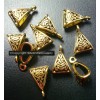 Use these cast zinc antique gold plated closed ring bails to create pendants. Attach to any loop, eye pin, or up-eye. Use split ring or jump ring or wire wrap, head or eye pin to closed loop on bail. Approximtely 1/2" long (15.5mm x 9.5mm)