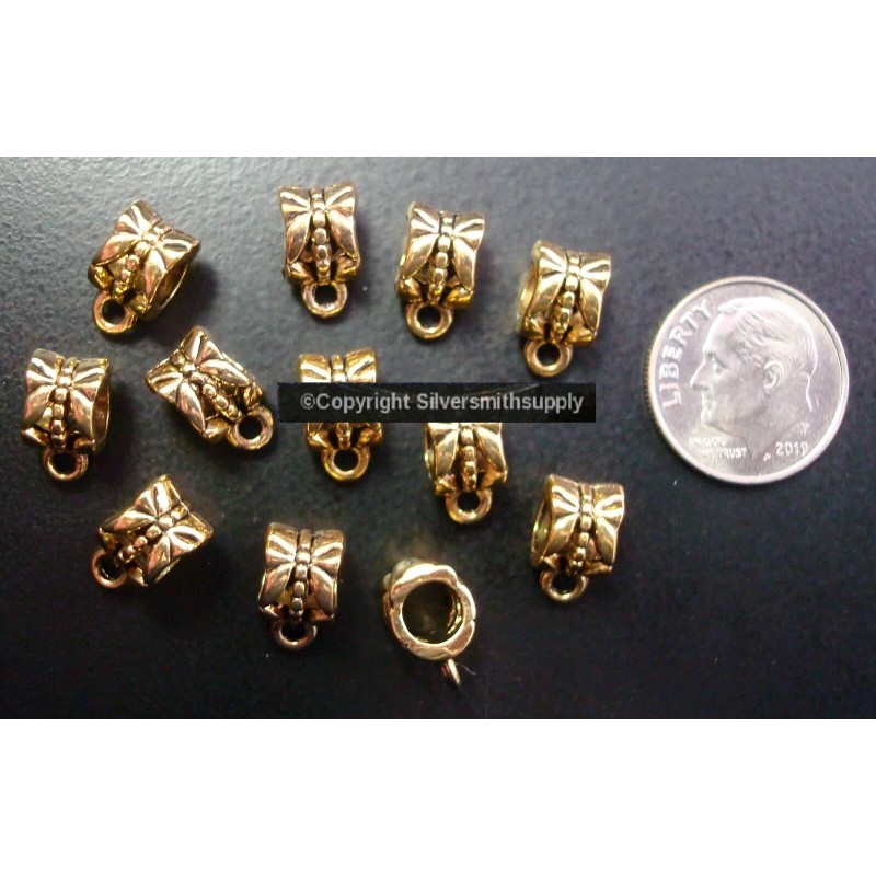 Silversmithsupply.com 12 Bails antique gold plt 12mm design no lead closed ring pendant bails PFG012