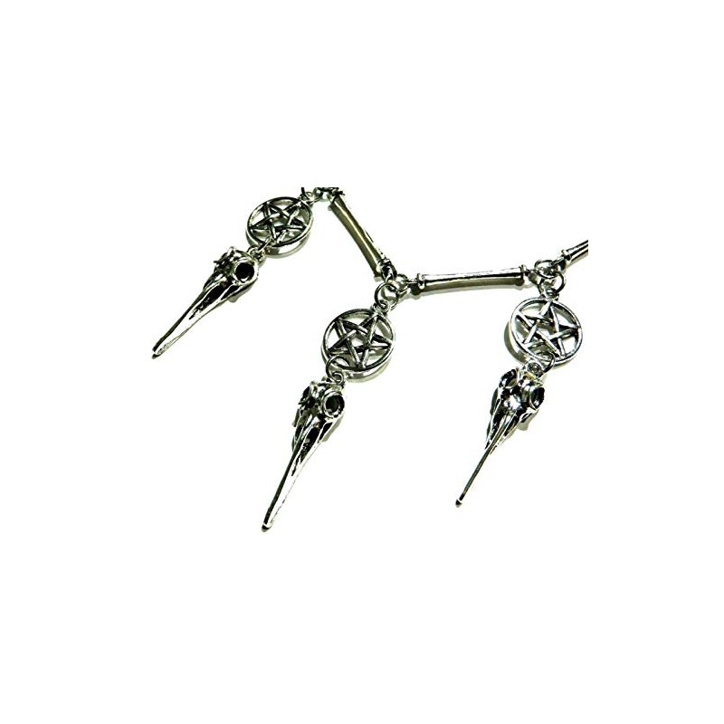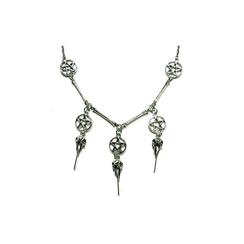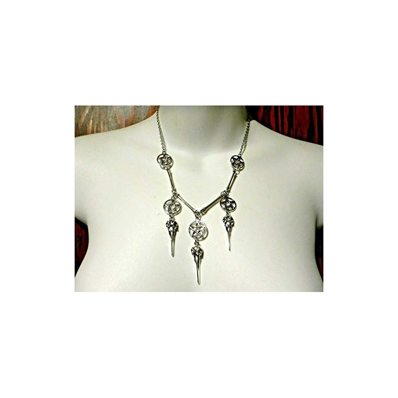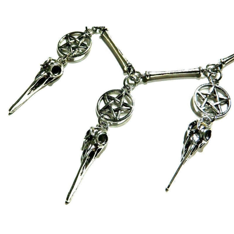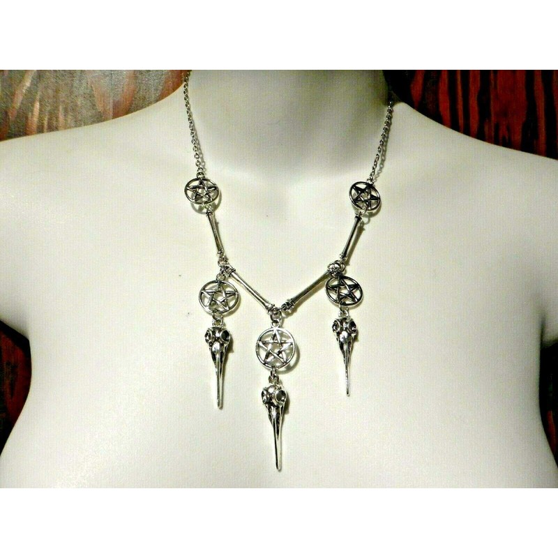 Silvertone Bird Skulls & Pentagrams Statement Necklace Gothic Wiccan Pagan Charms