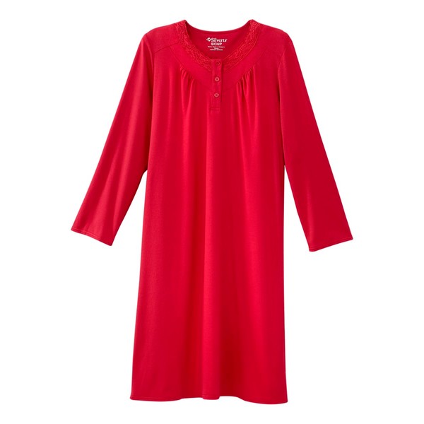 Silverts Hospital Gowns for Women Open Back, Night Gowns for Elderly Women, Adaptive Clothing for Seniors, Hospice Care Supplies, Hospital Robe, Old Lady Dress - Red SMA