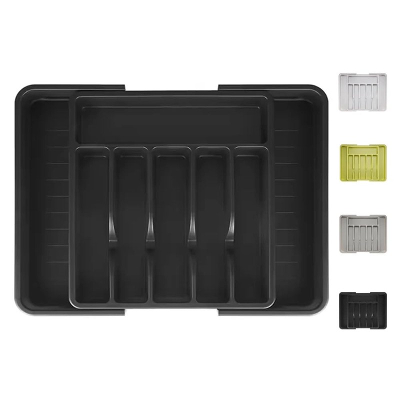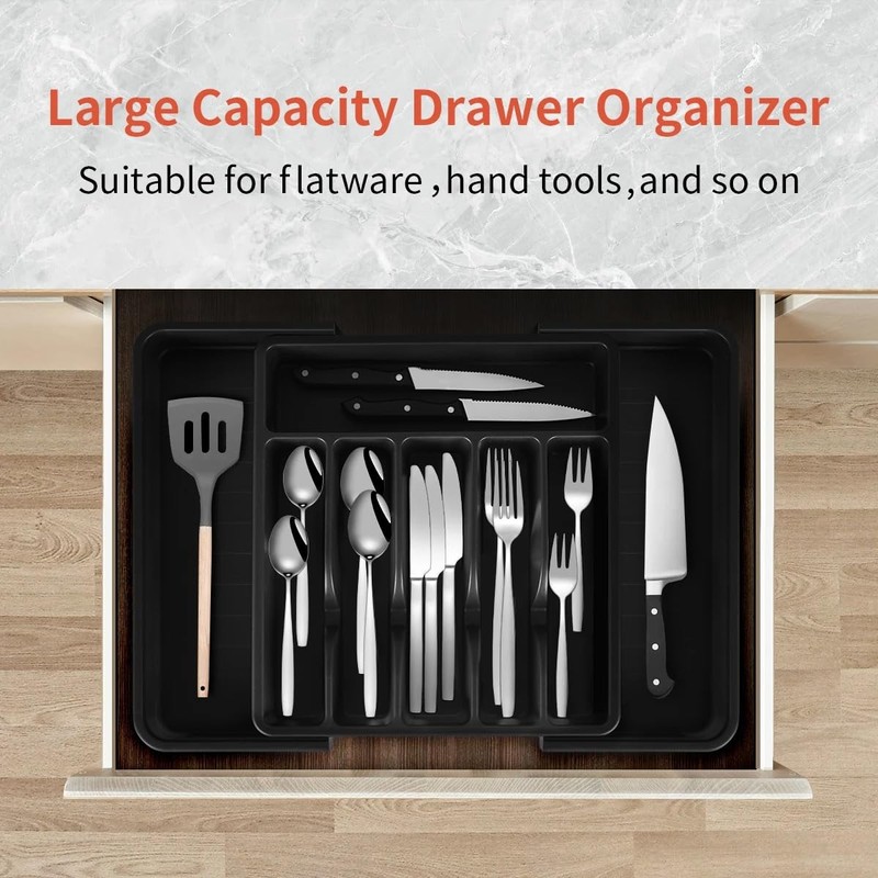 Silverware Flatware, Tray Holder kitchen Utnesil tool, Drawer Divider PP Expandable Drawer Organizer, Kitchen Cutlery Organizer, BPA Free Flatware, Large, Black