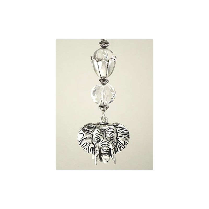 Silvery Metal Double-Sided Elephant Head with Faceted Clear Glass Ceiling Fan Pull Chain
