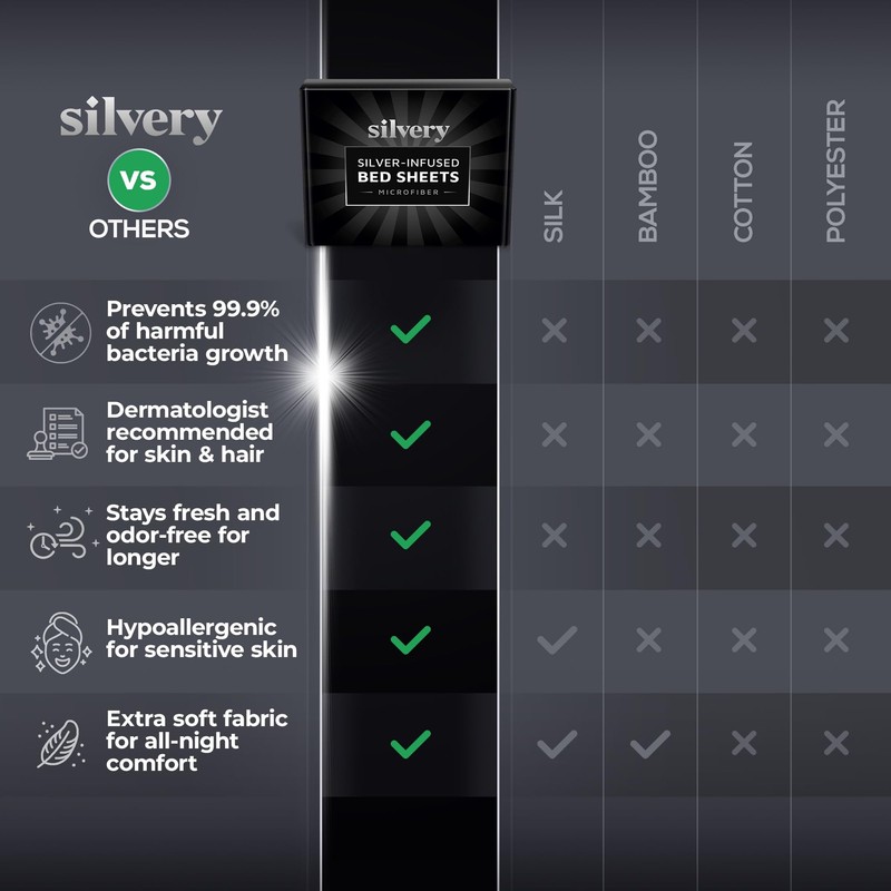 - STAY FRESH LONGER, WASH LESS: Thanks to Silvery Technology with the natural power of pure silver, your sheets stay fresher for longer, reducing the need for frequent washing. Enjoy fresh, clean bedding with less hassle, saving you time and effort on laundry while staying hygienic and comfortable.