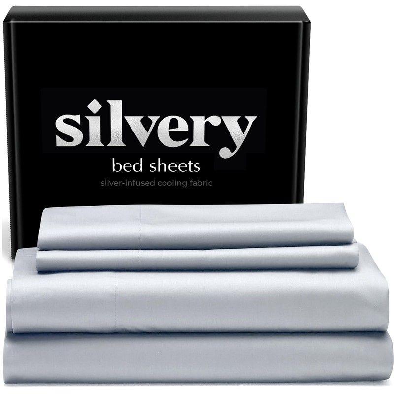 Silvery Silver Infused Bed Sheets Set - Award-Winning Self-Cooling Fabric with Self-Cleaning Silvery Technology™ That Stays Fresh 3X Longer for Hygienic Sleep (Gray, Queen)