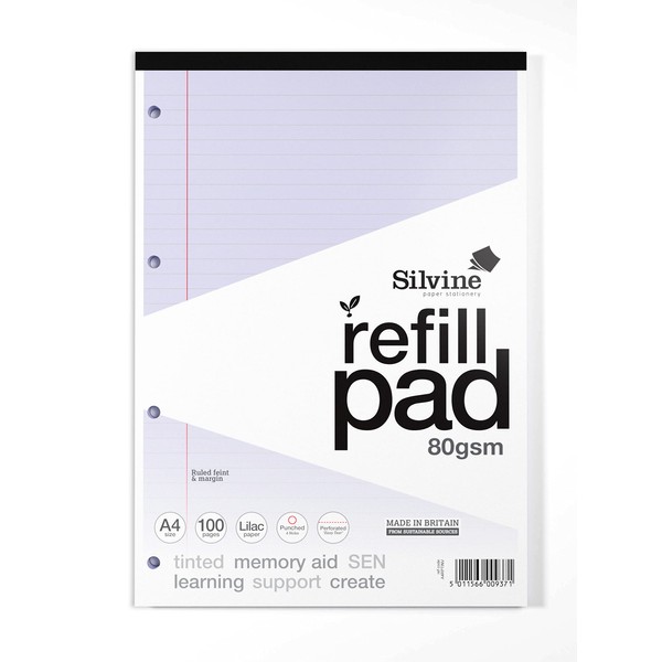 - A4 refill pad with 100 pages of premium 80gsm Lilac tinted paper to assist memory aid and SEN supportive learning.