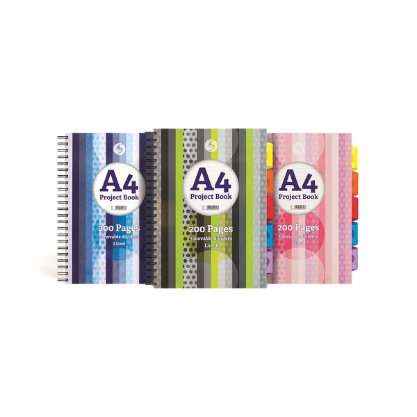 Silvine A4 Project Book 200 Pages With 5 Movable Dividers Lined Spiral Notebook
