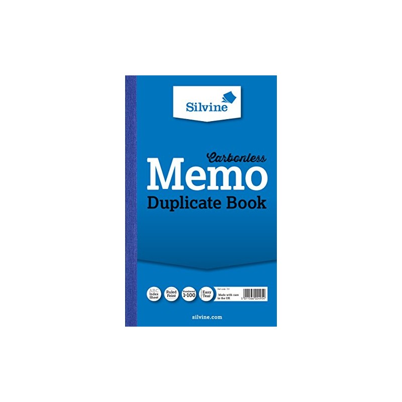 Silvine Carbonless Duplicate Memo Book - Numbered 1-100 with index sheet (210 x 127mm)