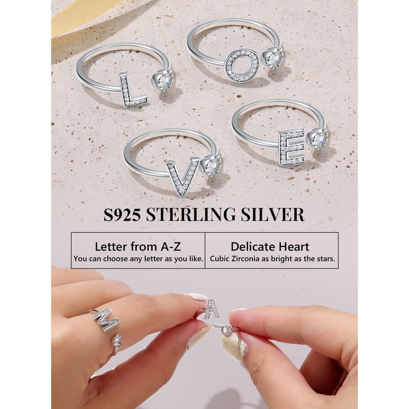 The impressive 8.6mm height of the letters adds a touch of sophistication, while the 4mm wide white zirconia heart brings a sparkle of elegance. The adjustable design allows for a perfect fit for US Ring sizes 5-10.