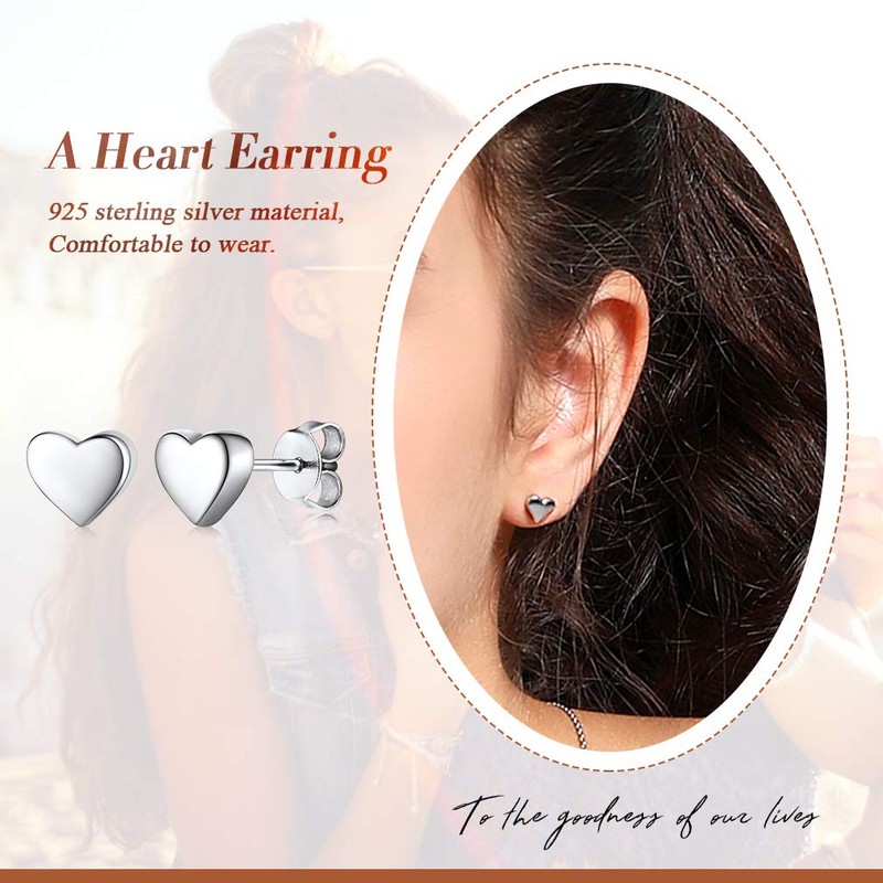 Silvora Dainty Heart S925 Stud Earrings, Valentine's Day Collection Romance 925 Sterling Silver Heart Earring for Women Girls