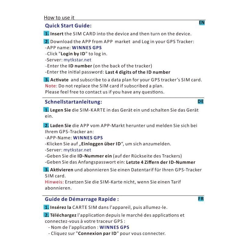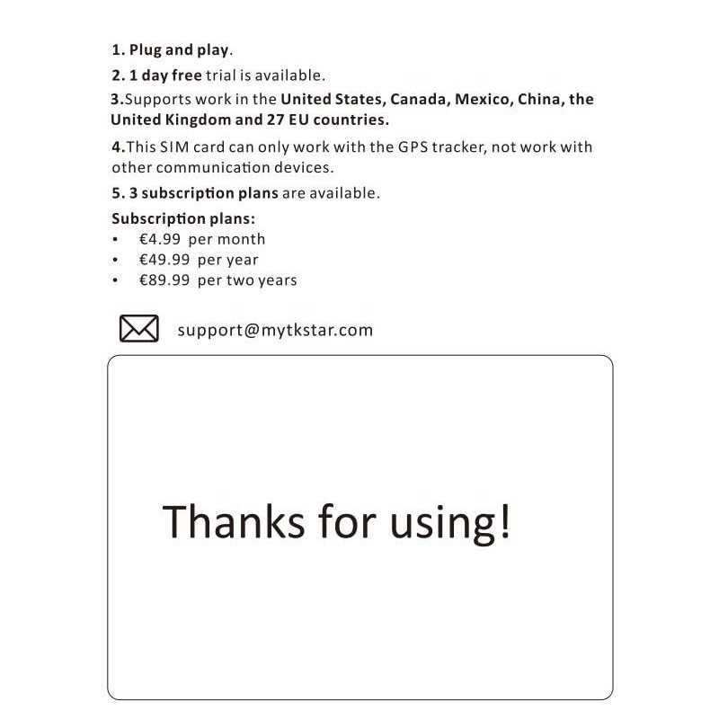 SIM Card for GPS Tracker, WINNES, TKMARS, TK905, TK913, TK915, GSM LTE