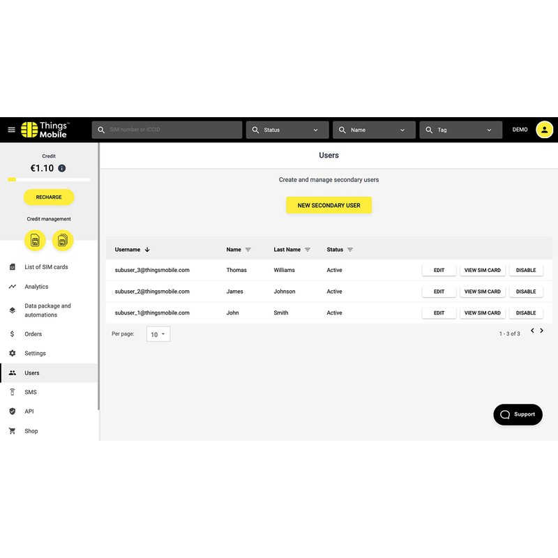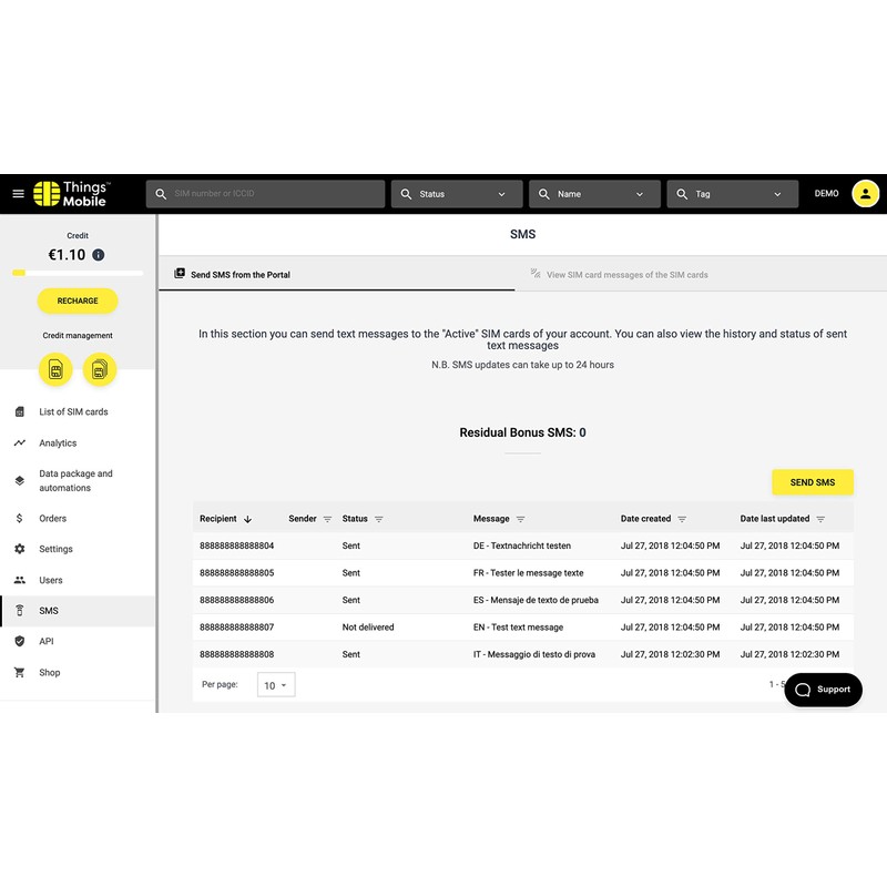 - Fixed IP on demand, VPN, sending and receiving SMS messages from the IoT portal