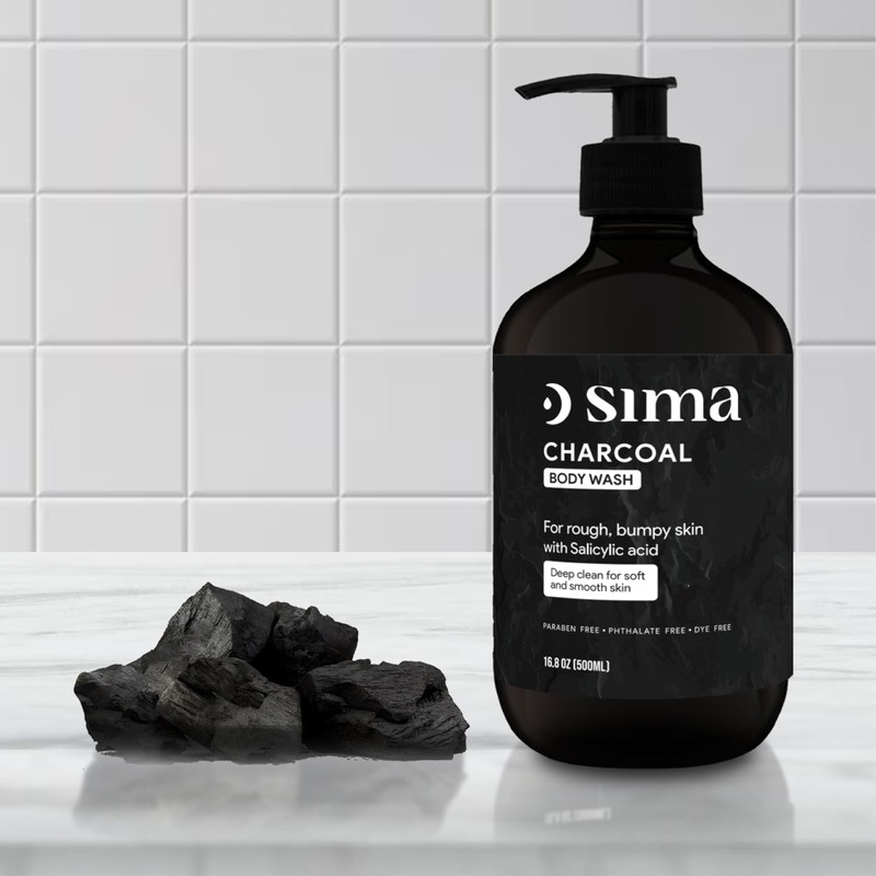 Sima - Charcoal Gentle Body Wash 500ml - With actrivated Charcoal and Salicylic acid. Ideal for sensitive skin. Free of Parabens and Dyes. Reduces acne and blackheads.