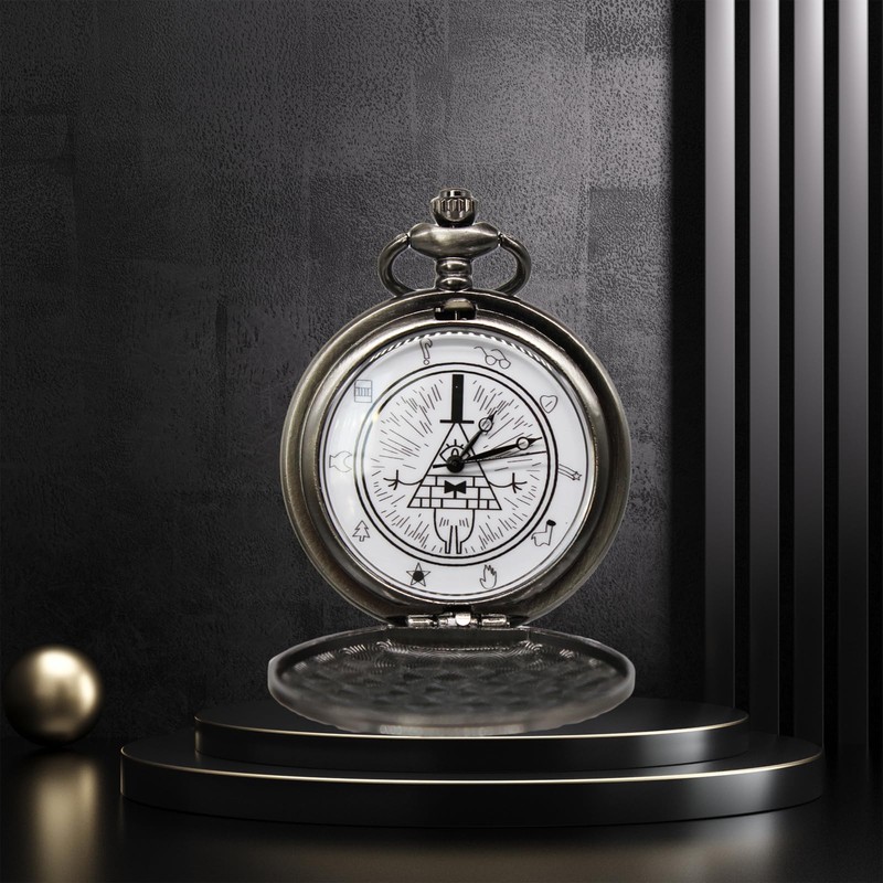 - 【Material】The Bill Cipher pocket watch features a high-quality quartz movement, shatter-proof resin lenses, anti-fall and anti-wear. Durable alloy watch case and chain, do not fade, wear-resistant and durable.