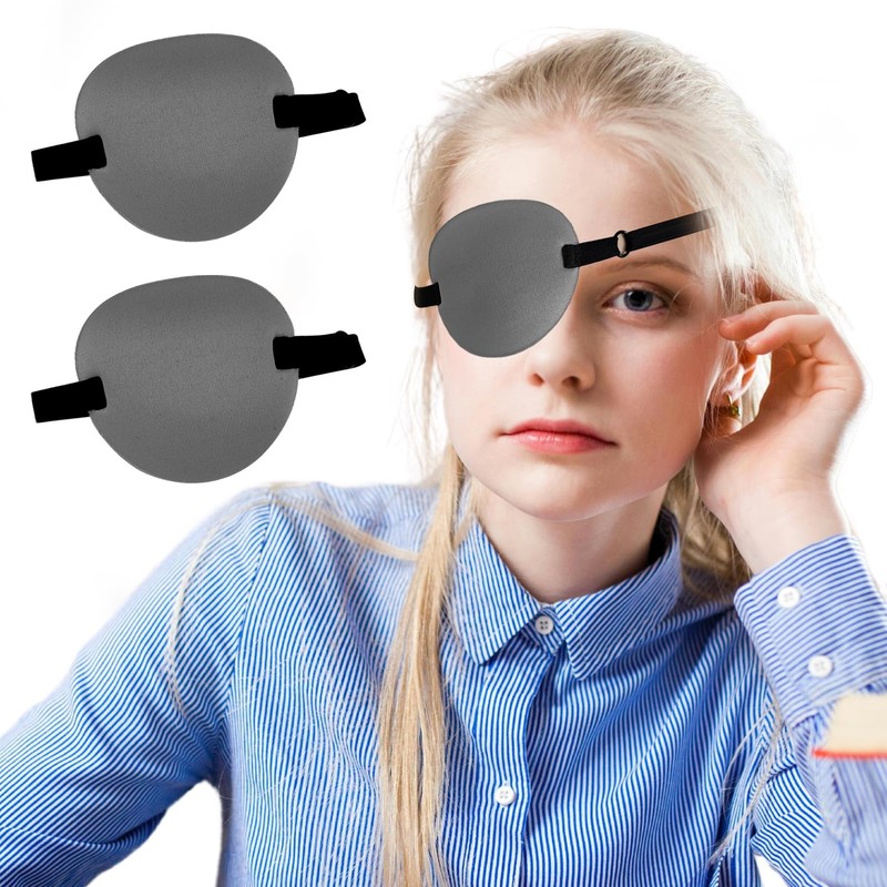 SimautHawk 2 Pcs, Eye Patch,Eye Patches Medical, Amblyopia Lazy Eye Patches,Adjustable Eyepatch, for Left or Right Eyes, and Cosplay Pirate Costume (Gray, 2.95 x 2.76 inches)
