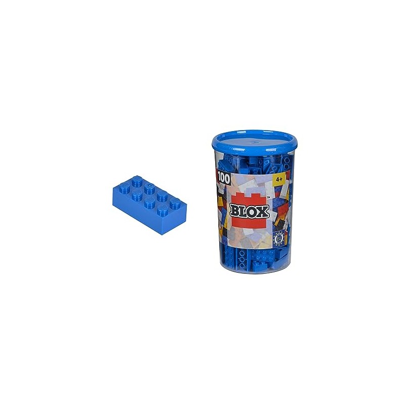 Simba 104118906 - Blox, 100 Blue Building Blocks for Children from 3 Years, 8 Blocks, Includes Tin, High Quality, Fully Compatible with Many Other Manufacturers