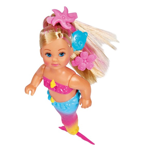 - Can swim - Little Evi enchants as a beautiful mermaid with colourful tail fin and great colourful hair clips. Arms and tail fin move in the water so Evi can swim properly