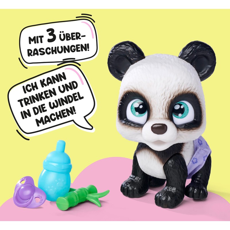 • Interactive functions – like all Pamper Petz animal babies, the approx. 15 cm panda figure with large glitter eyes drink real water and pee. Even the nappy turns yellow