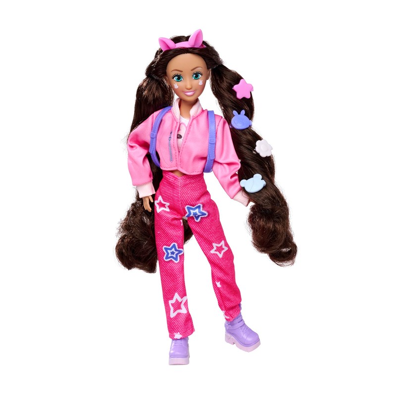 - With doll accessories - In addition to the 26 cm hairdressing doll, the set includes cool extras such as shoes, comb, backpack, headband and colourful hair clips - for imaginative looks and trendy hairstyles.