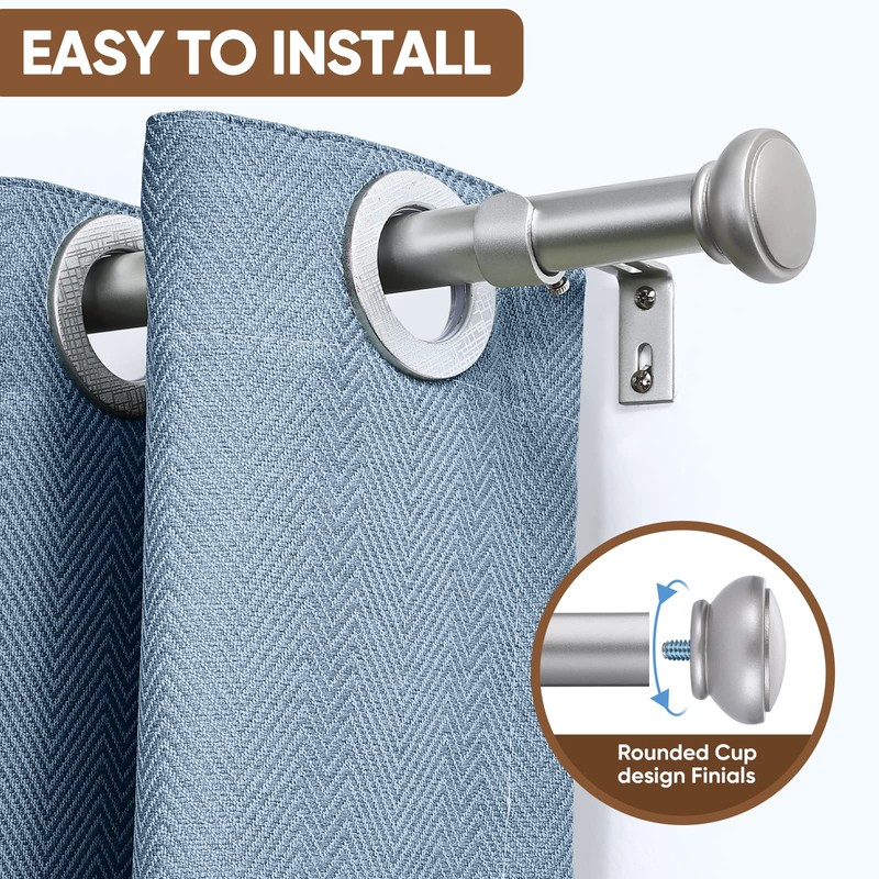 - 【Curtain Rods for Windows 28 to 48 inch(2.3-4ft)】Package include 3 x 15.7" x 1"fixed rods,1 x 15.7" x 7/8"adjustable rods,2 x finial,2 x bracket,2 x splice nuts,4 x anchor,4 x screw.Silver curtain rods for windows can extend from 28 to 48 inches, choose the right size curtain rods according to the length of your window.