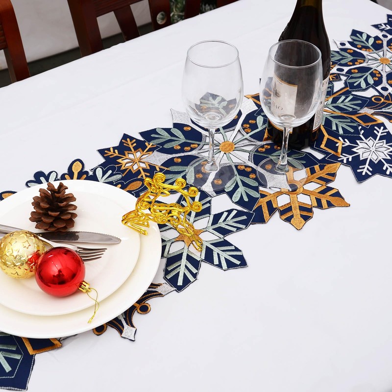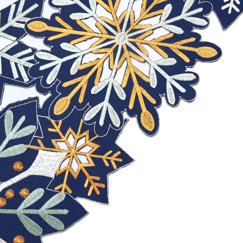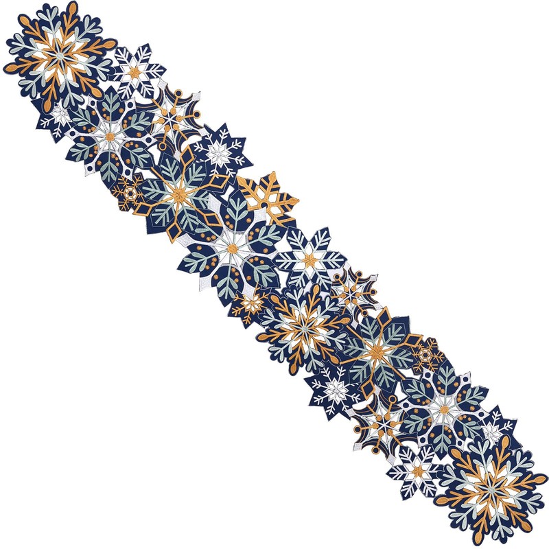 Simhomsen Embroidered and Hand Cut Out Christmas Holiday Winter Snowflake Table Runner (Navy Blue, 13 × 88 Inches)