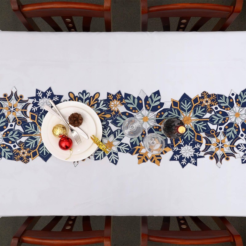- Festive Decor: This vibrant table runner features an array of intricate snowflake designs, perfect for adding a touch of holiday cheer to your home.