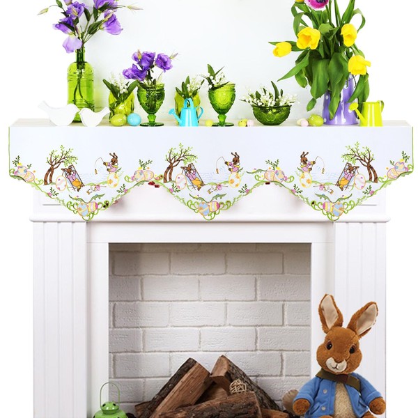 Simhomsen Embroidered Easter Bunny Mantel Scarf Runner (70 × 17 Inches)
