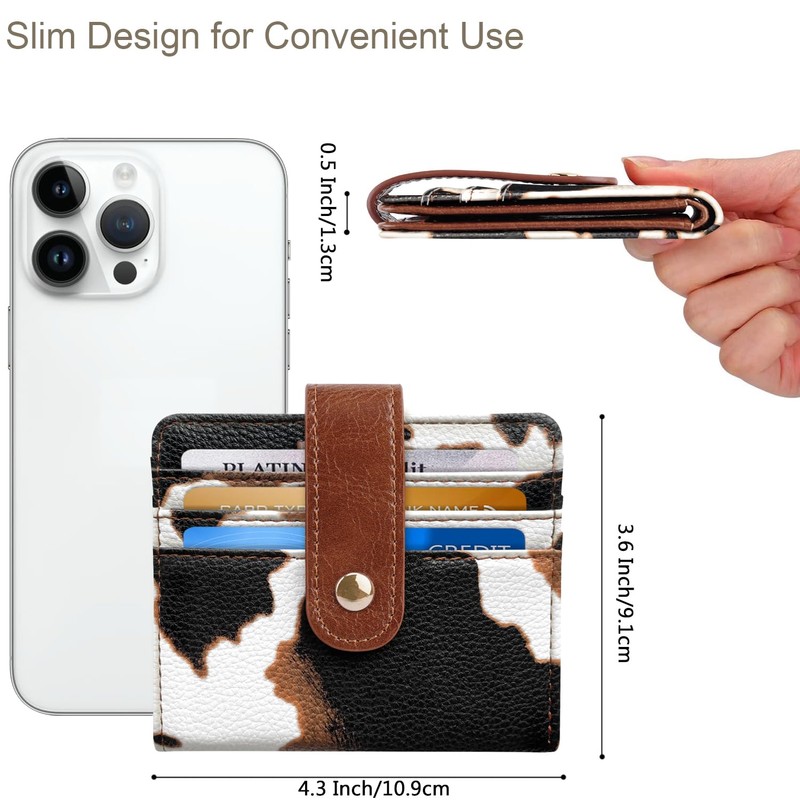 Simikol Small Wallets for Women Slim Minimalistfor Bifold Credit Card Holder for Pocket or Purse, Brown Cow, Compact