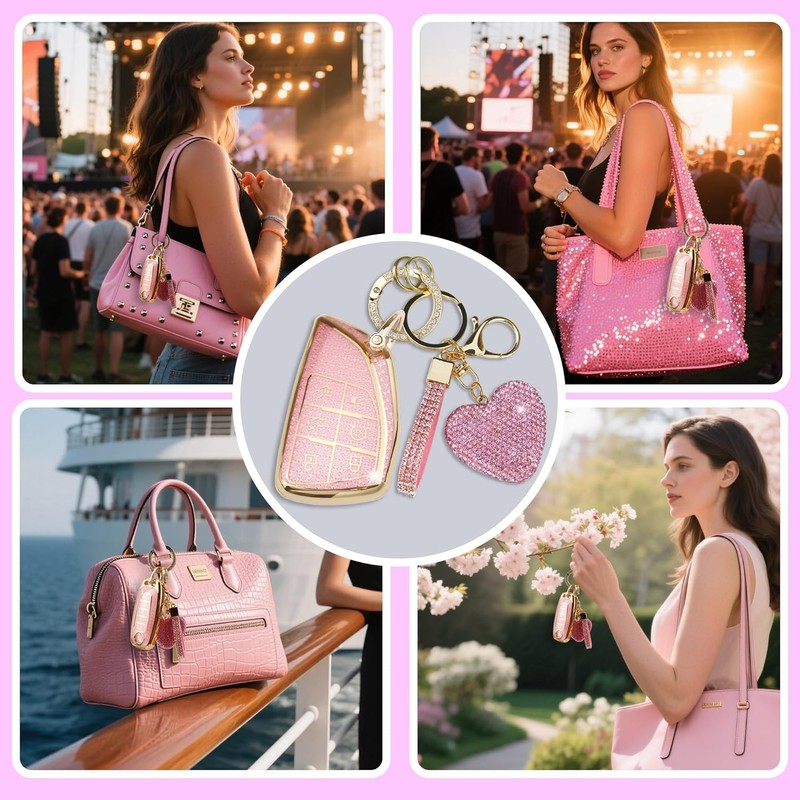 Built-in Special Texture & Delicate Keychain: The pink car key shell has snowflake texture inside that make your car key shining, elegant and unique. The button patterns stay clear and easily readable even after long time usage. Moreover, we offer a delicate keychain that is convenient for you to carry car key to anywhere.