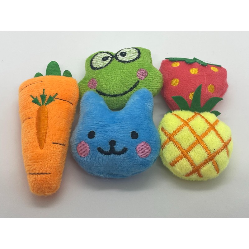 Simon's Catnip Toys for Indoor Cats, Premium Quality, Plush Catnip Toys Pack of 5, Including one Each of Carrot, Strawberry, Pineapple, Frog and Cat. Hand Made, Product of Canada Approx 2"x2" Each