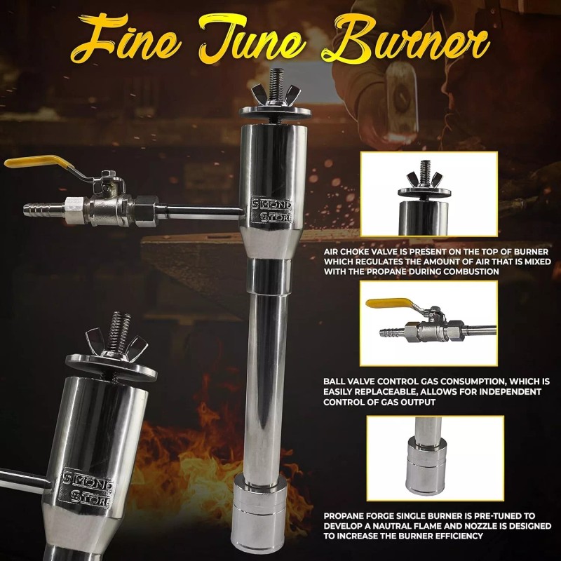 Balance Ideal Temperature: The Air Intake Valve attached on top and the regulator allow you to control the flow of air and gas during combustion and help you to achieve the right temperature for forging.