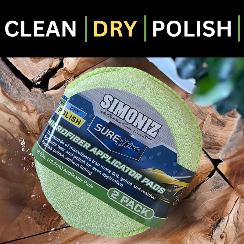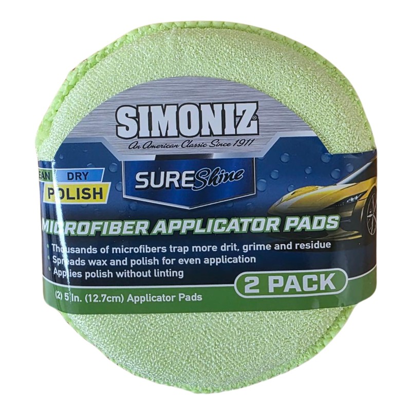 - GENTLE ON PAINT, TOUGH ON PERFORMANCE – Simoniz Sure Shine Microfiber Applicator Pads are designed with ultra-soft microfiber that’s safe for clear coats, paint finishes, and sensitive surfaces. Perfect for applying wax, polish, or sealant without leaving scratches or swirl marks.