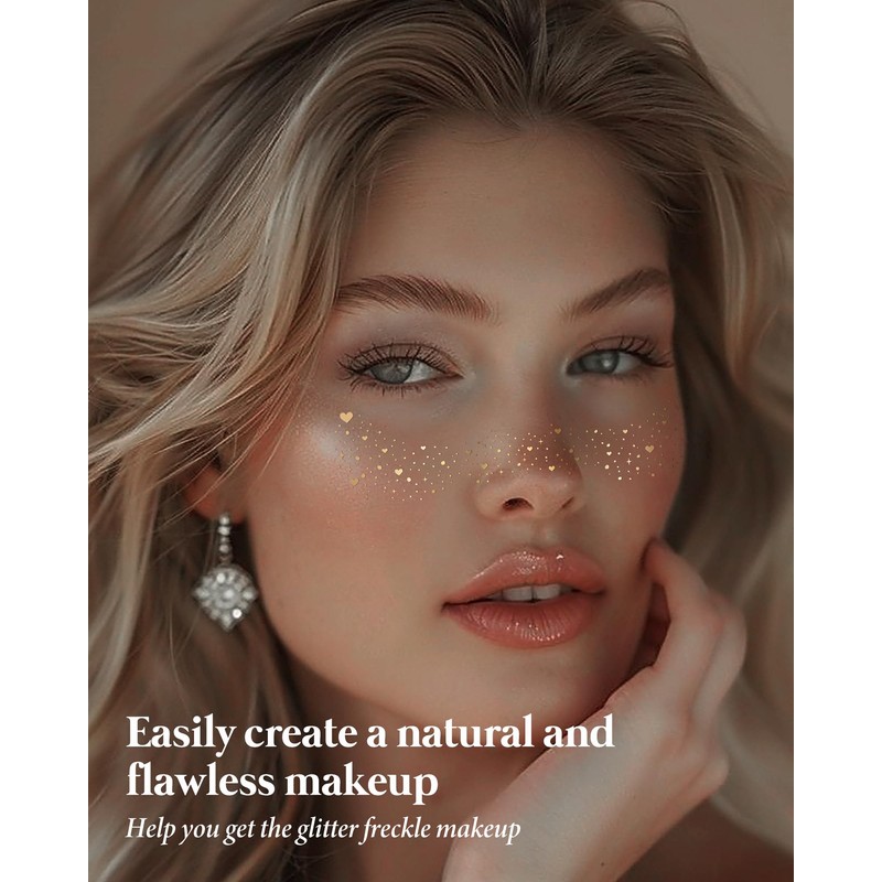 - Radiant Quality & Skin-Friendly: Our Makeup Patches C Face Glitter Speckles are crafted with care, ensuring they are gentle on all skin types while delivering a brilliant, radiant glow. Enjoy the look of sparkling freckles that won't irritate your skin.