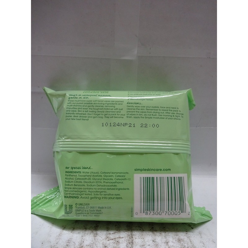 Simple Clean Face Wipes, Simple Clean Face Wipes, 25 Count (Pack of 1)