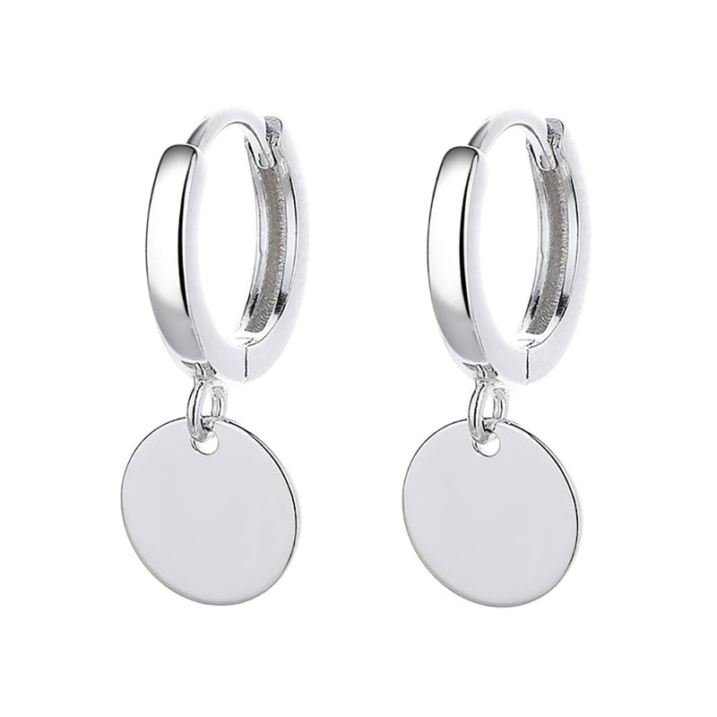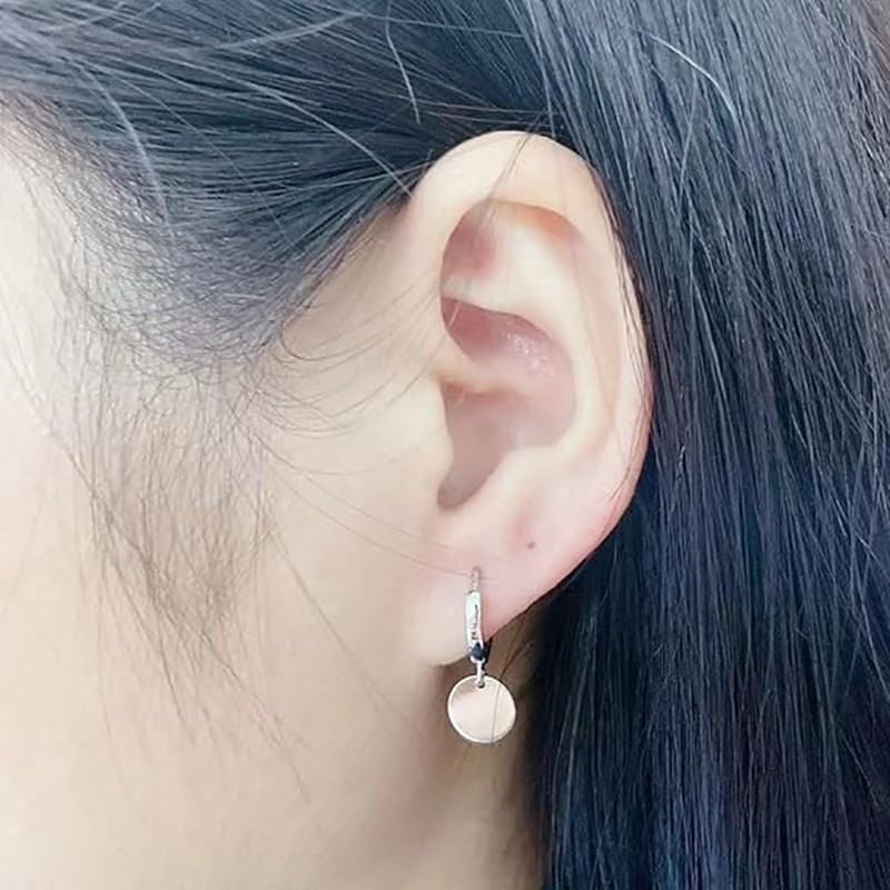 Simple Coin Disc Dangle Hoop Earrings for Women Girls Round Circle Cartilage Earring Small Huggie Hoops Drop Minimalist Jewelry Gifts Hypoallergenic (Silvery)