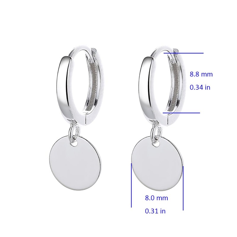 - Circle Disc Dangling Huggie Hoops Earrings Size: Inner diameter: 8.8mm. Outer diameter: 11.6mm. Coin: 8mm.