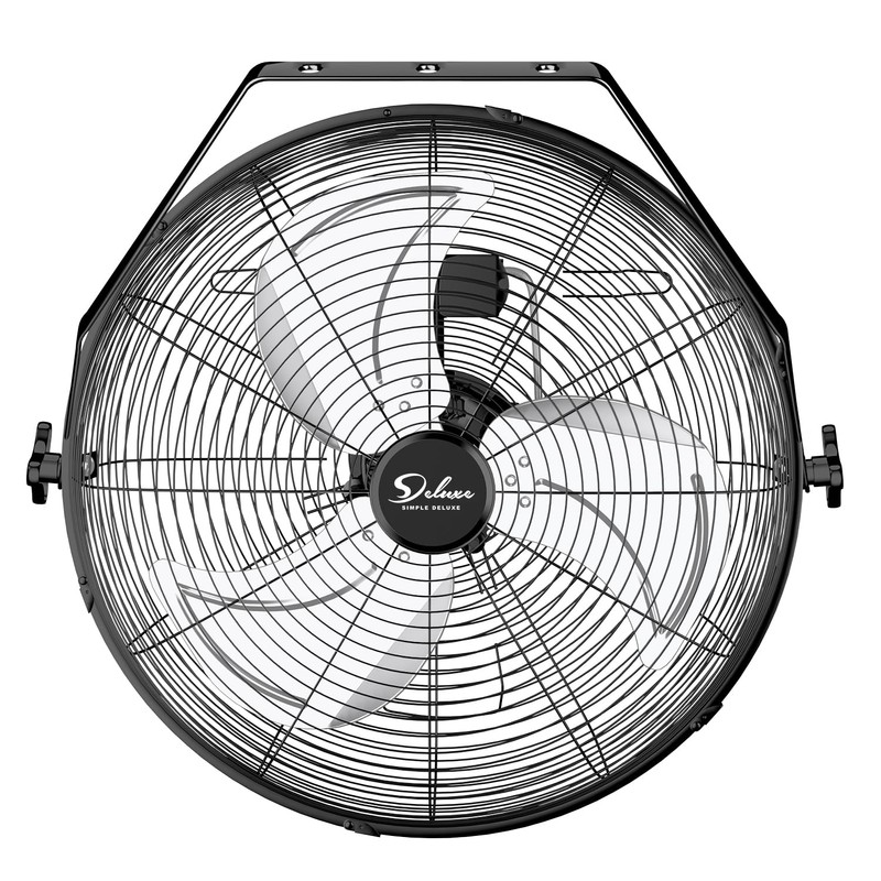 - High Velocity Air Circulator Metal Wall Mount Fan - This 20 Inches tilt-around fan from Simple Deluxe is ideal for industrial commercial residential shop use patio backyard or even warehouse and factory stations and it tilts a full 360 degrees made out of powder coated steel construction and premium ball bearing motors