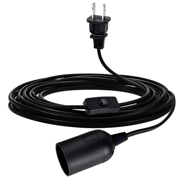 Simple Deluxe 20ft Hanging Lantern Extension Cord Cable, Plug-in E26 Pendant Light Socket with On/Off Button for Kitchen, Living Room (Bulb Not Included), Black, 1 Pack
