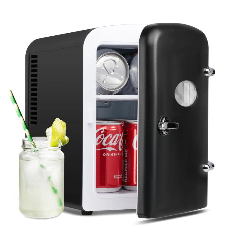 Simple Deluxe 4L 6 Can Portable Mini Fridge Cooler & Warmer with window Freon-Free Black