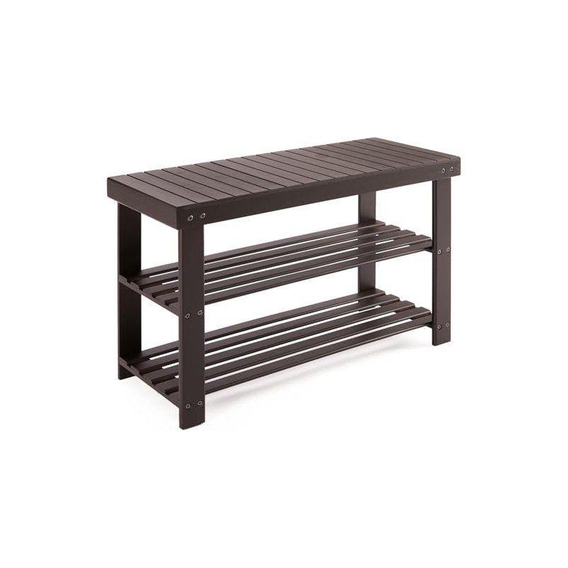 Simple Deluxe Bamboo Shoe Rack Bench, 3 Tier Sturdy Shoe Bench, Storage Shoes Organizer, 286lb Capacity Entryway Benches for Front Door, Bedroom, Living Room, Bathroom, Balcony, Brown