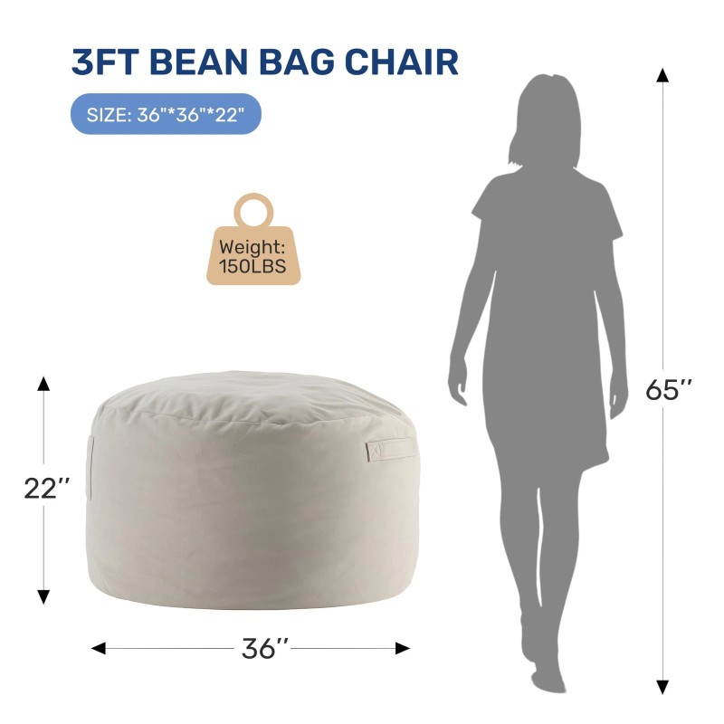 Simple Deluxe Bean Bag Chair with Supportive Memory Foam Filled for Living Room Bedroom Brown