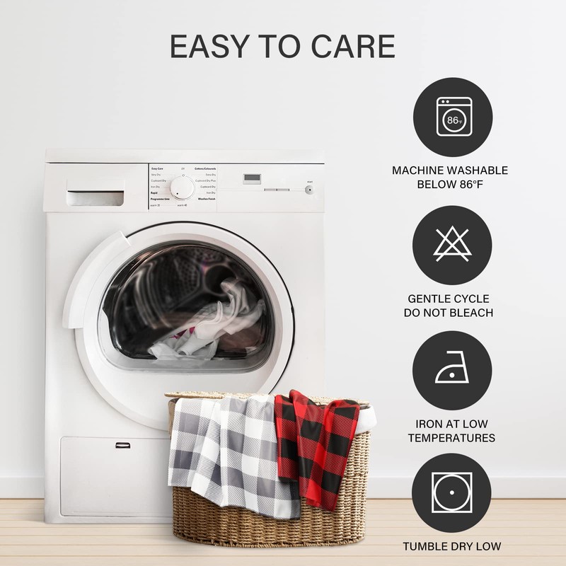 - Easy Care: These buffalo check blackout curtains are machine washable, with warm or cold water, use mild detergent, no bleaching. Hang dry or tumble dry. Low temperature ironing.