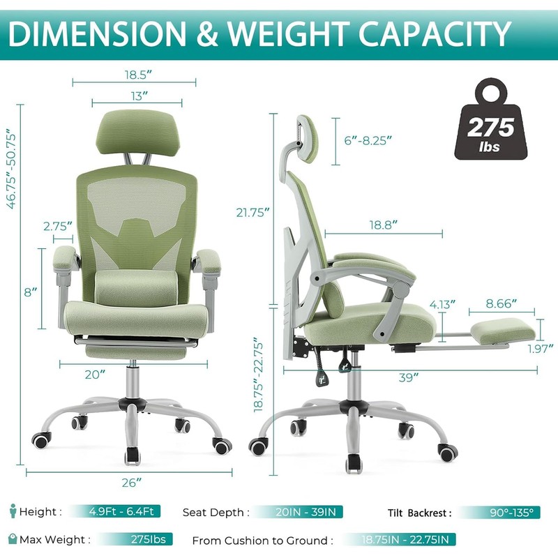 - 【Multi-Function Adjustability】Easily customize your comfort with a pneumatic gas lift for smooth height adjustment. The reclining backrest locks at angles between 90° and 135°, while the headrest can be moved up, down, forward, and backward for personalized support.
