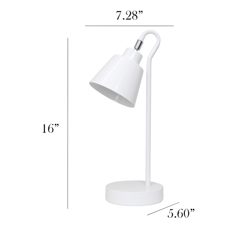 Simple Designs LD1079-WHT 16" Sleek Essentials Metal Looped Desk Task Lamp with Adjustable Shade, for Office, Desk, Nightstand, Dorm, White
