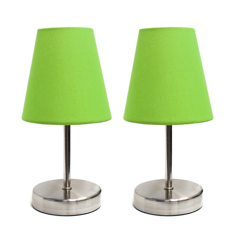 Simple Designs LT2013-GRN-2PK Sand Nickel Mini Basic Table Lamp with Fabric Shade 2 Pack Set, Green