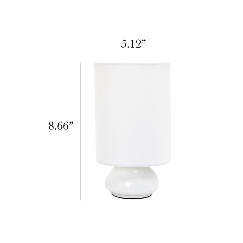 - Add a contemporary feel to any room with these attractive white on white touch lamps. Perfect size for placing on end tables or night stands. Recommended Light Bulb Shape Code-B10