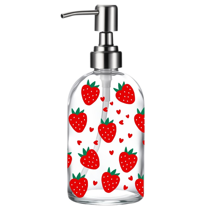 Simple Glass Soap Dispenser with Rust Proof Pump,Kitchen Dish soap Dispenser for Kitchen Shower(Strawberry)