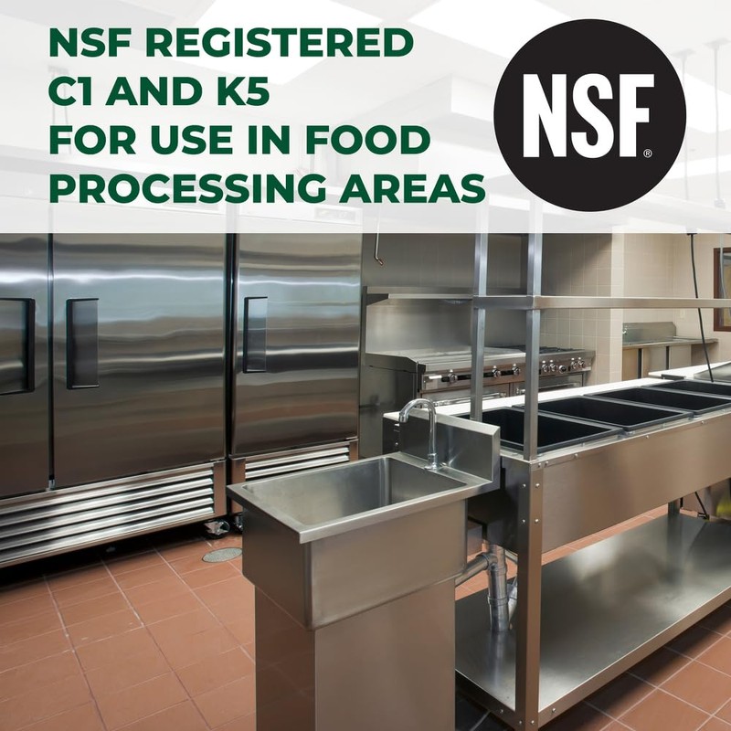- NSF registered C1 and K5 for use in and around food processing areas.